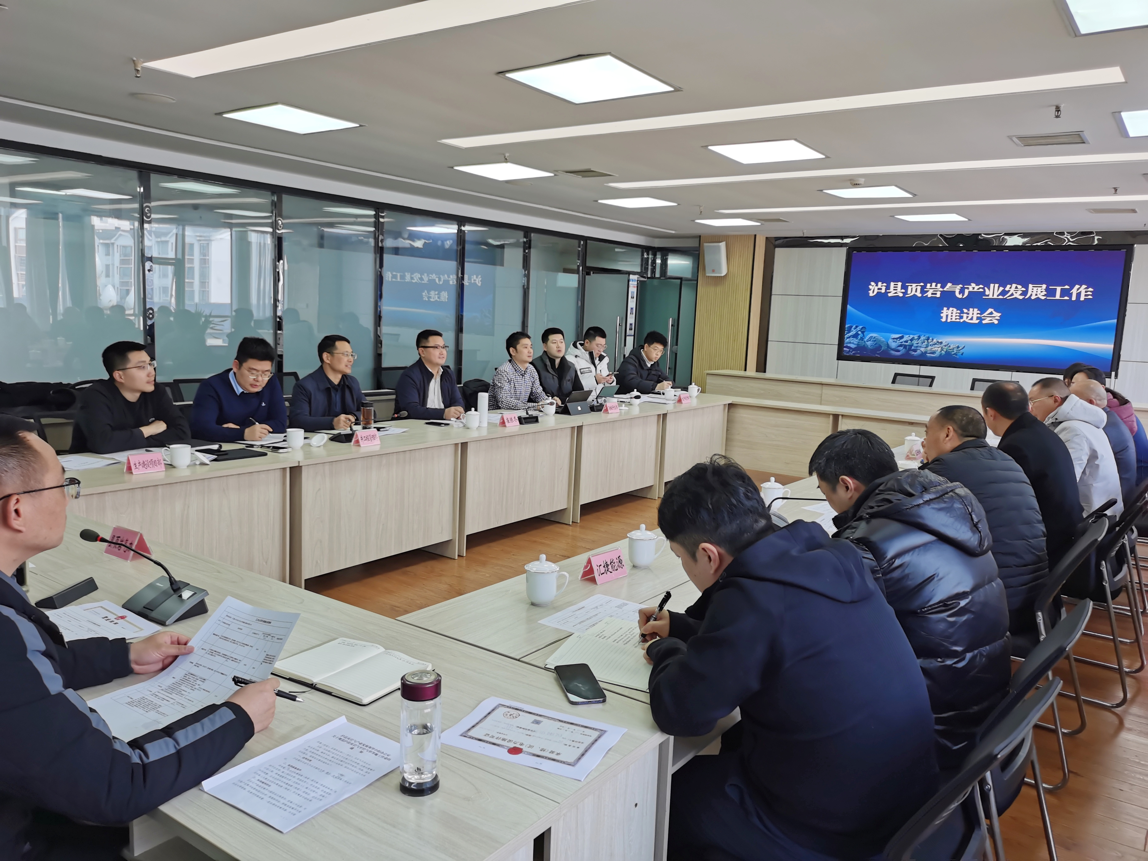 2月11日下午,瀘縣頁巖氣產(chǎn)業(yè)發(fā)展工作推進(jìn)會在縣頁巖氣辦會議室召開。會上,匯興公司就2025年可承接頁巖氣上、下游產(chǎn)業(yè)配套業(yè)務(wù)向四川頁巖氣公司各部門進(jìn)行逐一匯報,并就下一步可承接業(yè)務(wù)進(jìn)行洽談??h人大常委會副主任曾一洴、縣頁巖氣產(chǎn)業(yè)發(fā)展領(lǐng)導(dǎo)小組相關(guān)領(lǐng)導(dǎo)、集團公司董事長黃寧、副總經(jīng)理劉剛、四川頁巖氣公司相關(guān)負(fù)責(zé)人出席會議,能源公司、匯捷公司列席會議。